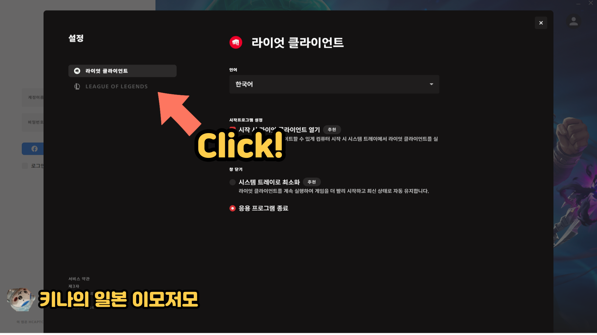 ('라이엇 클라이언트'는 로그인 할 때 사용하는 말그대로 '클라이언트', 변경 안해도 게임에 지장 X)